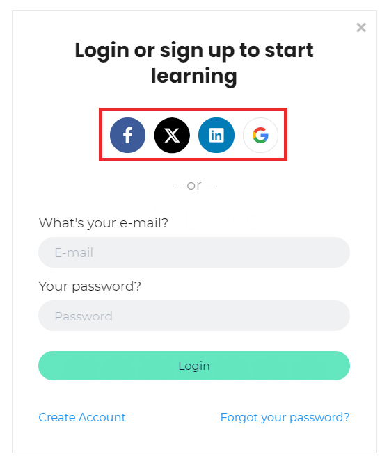 If you've used a social account (Facebook, Twitter, Linkedin, Google) to register to the school then all you need to do is click on the respective button in the Login form.