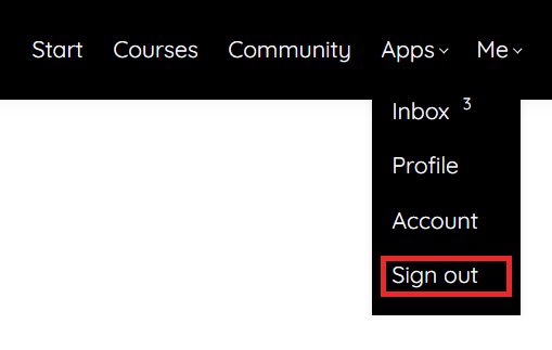 If you want to log out from the online school simply click the Sign out option that can be found at the top-right menu.