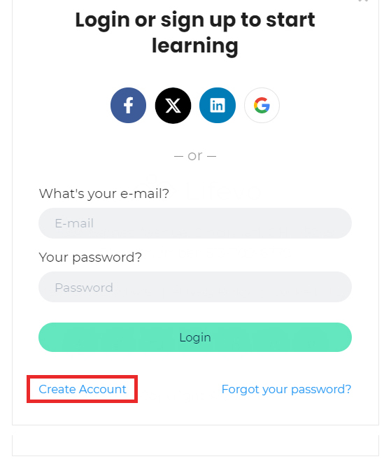 The second option for creating a new account is using your email. Click on the Create Account link that can be found in the login form.