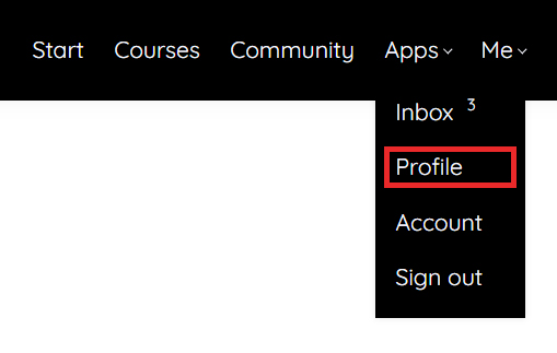 When logged in to your school, click on the top bar Profile suboption after hovering your mouse over the Me top bar option. This will lead you to your profile page.